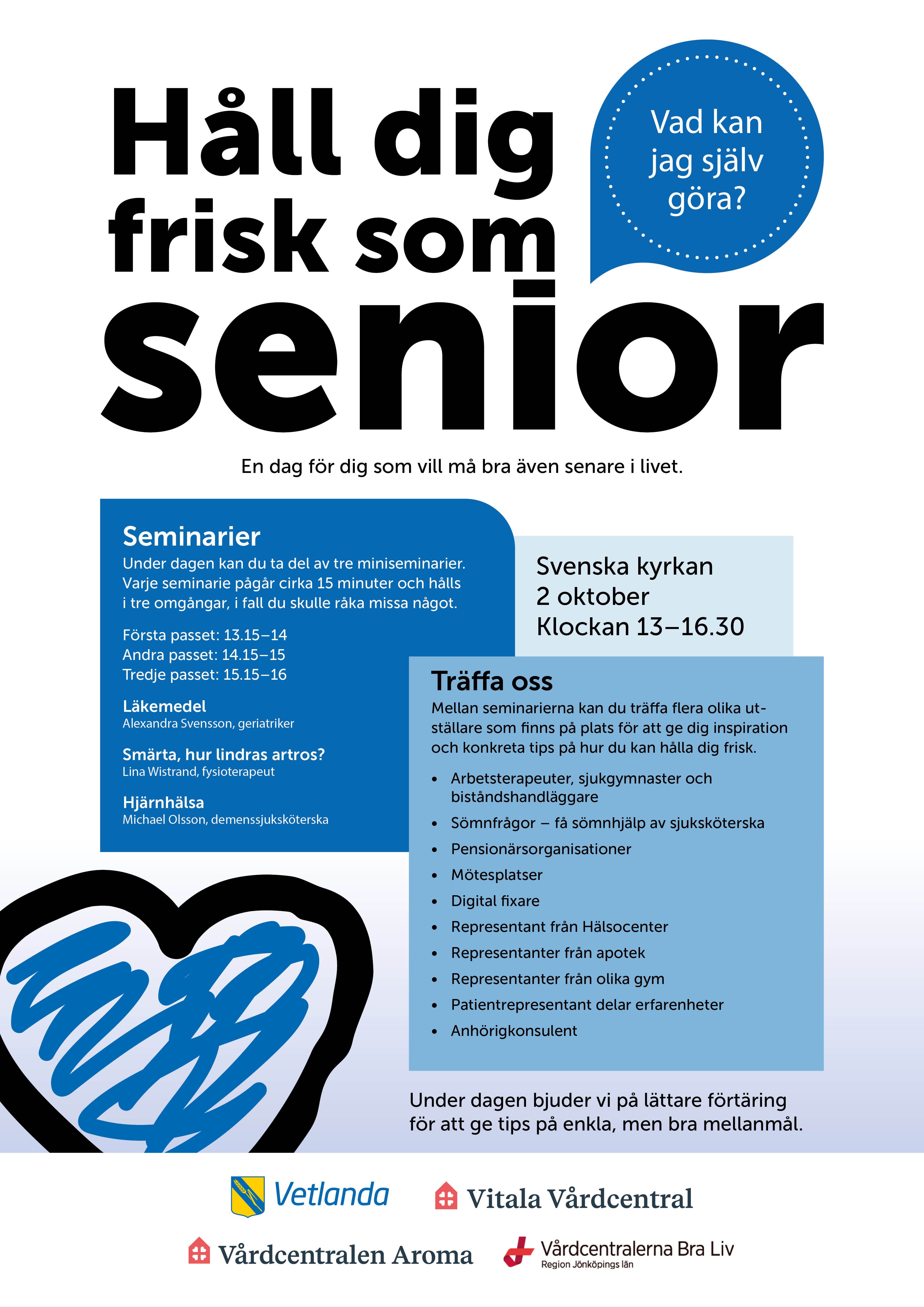 Mellan seminarierna kan du träffa flera olika utställare som finns på plats för att ge dig inspiration och konkreta tips på hur du kan hålla dig frisk som senior.
