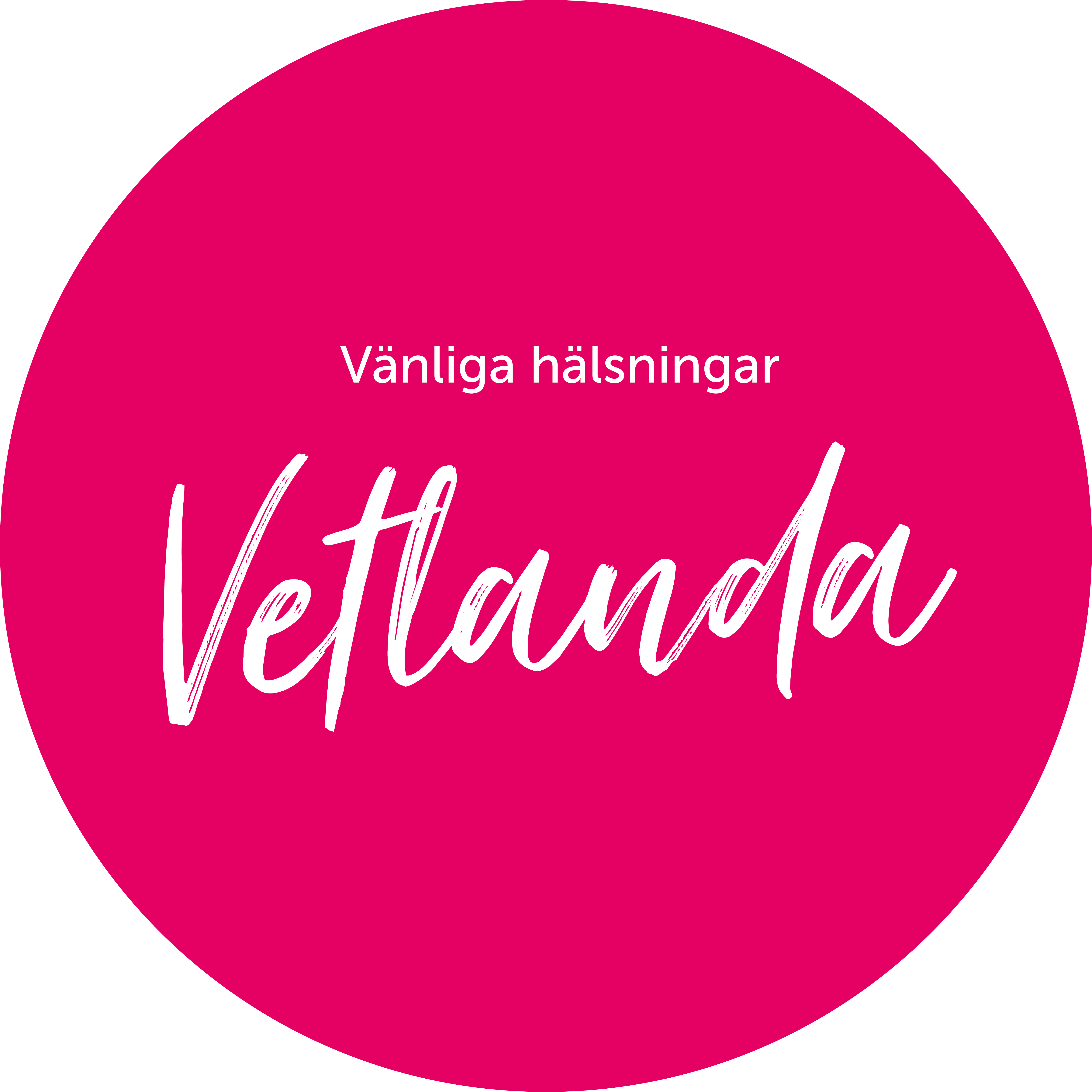 Logotyp Vänliga hälsningar Vetlanda i rosa cirkel