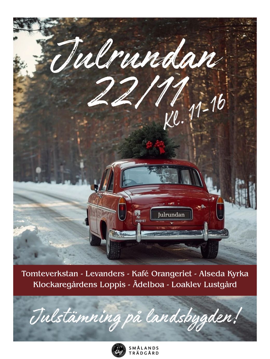 Julrundan – ett evenemang som erbjuder en dag fylld med julstämning. Packa bilen full med vänner, grannar, barn eller barnbarn för en härlig dag ute hos oss på landet!