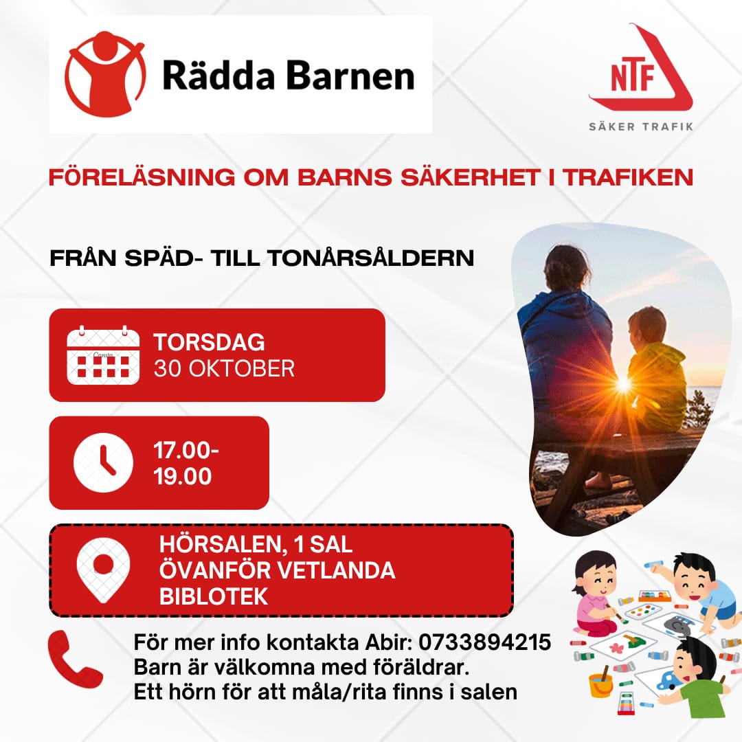 Välkommen till en viktig och kostnadsfri föreläsning där en representant från NTF Jönköping kommer att prata om barns säkerhet i trafiken. Föreläsningen riktar sig till föräldrar, vårdnadshavare och andra vuxna som vill få kunskap och verktyg för att skapa en tryggare trafikmiljö för barn.