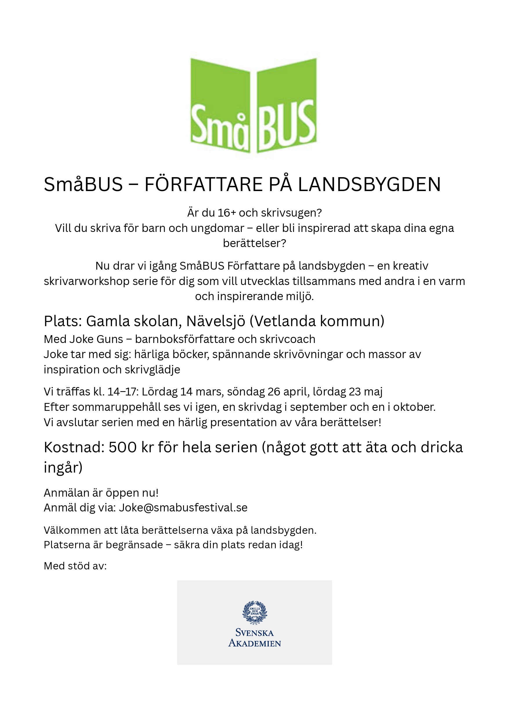 Anmäl till joke@smabusfestival.se.